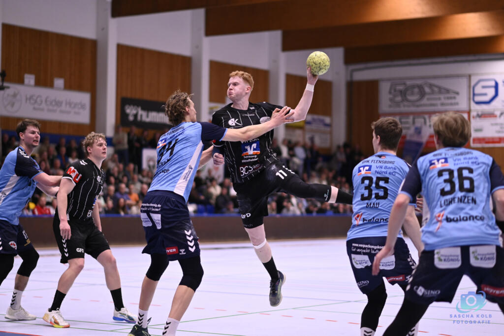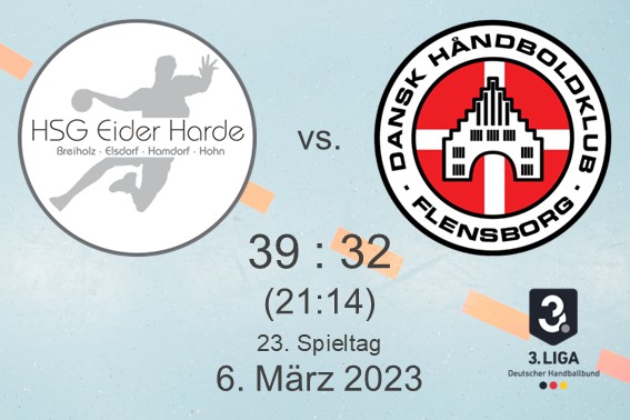 Zweimal gegen DHK Flensborg gespielt, vier Punkte geholt. Die Derby-Bilanz der Handball-Männer der HSG Eider Harde gegen das SDU-Team kann sich in dieser Saison sehen lassen. Entgegen allen Erwartungen verzichtete die Mannschaft von Trainer Matthias Hinrichsen – übrigens ein ehemaliger DHKler – diesmal auf einen Krimi. Stattdessen setzte sie sich klar und deutlich in einer pickepackevollen und stimmungsvollen Hohner Sporthalle mit 39:32 (21:14) durch. In der Tabelle der 3. Liga Nord-Ost beträgt der Vorsprung der HSG auf die Flensburger jetzt fünf Punkte. Nicht unwichtig für Eider. „Wir wollen in der Abschlusstabelle vor dem DHK landen. Da schwingt immer auch ein bisschen Prestige mit“, grinst Hinrichsen.